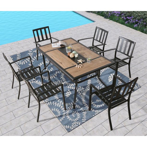 It includes a dining table, four sling folding chairs and a market umbrella. Simply order yours now online and have it delivered to your home or pick it up at the store. Great for summer time dinners or conversation with a cocktail in hand This round outdoor bistro dining table blends perfectly in any porch, patio, or lawn setting; Jun 10, 2021 · lots of patio furniture, patio dining tables and umbrellas are currently in stock at walmart.